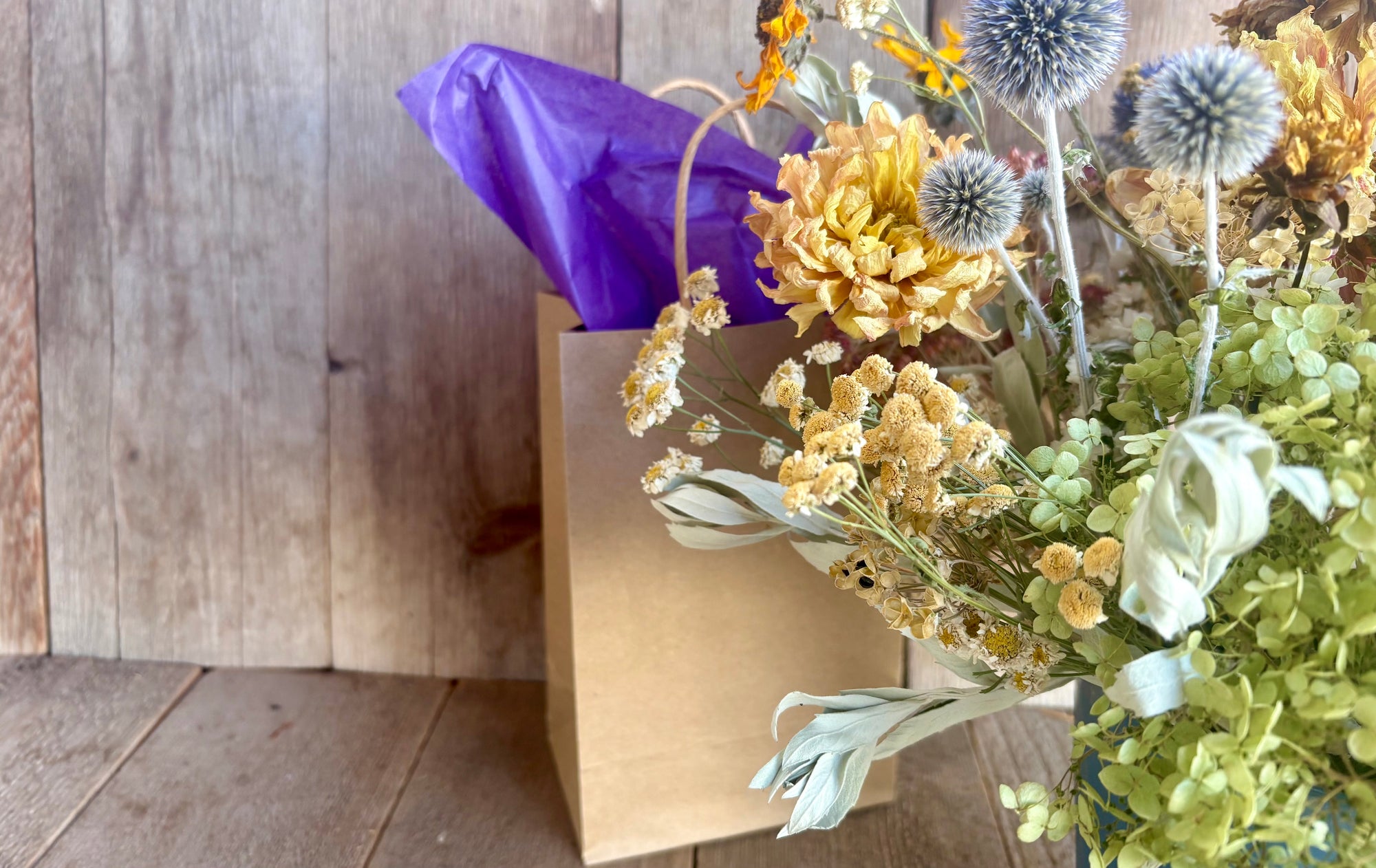 We also offer dried flower arrangements & wreaths, small plants & mixed planters, botanically-infused body products and flower & crystal essences.